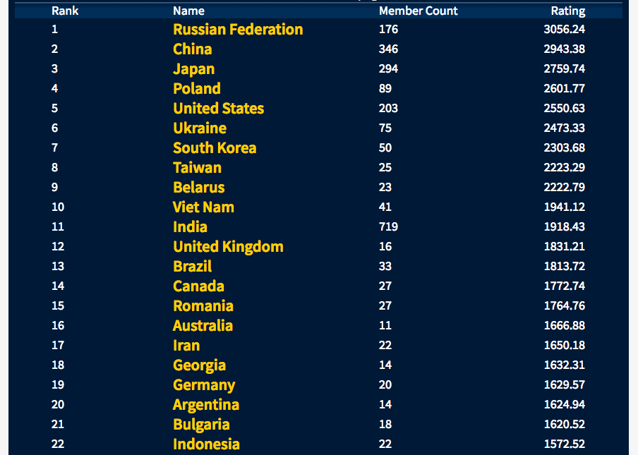 | TopCoder Country ranking (lower is better) | 20 | 6 |