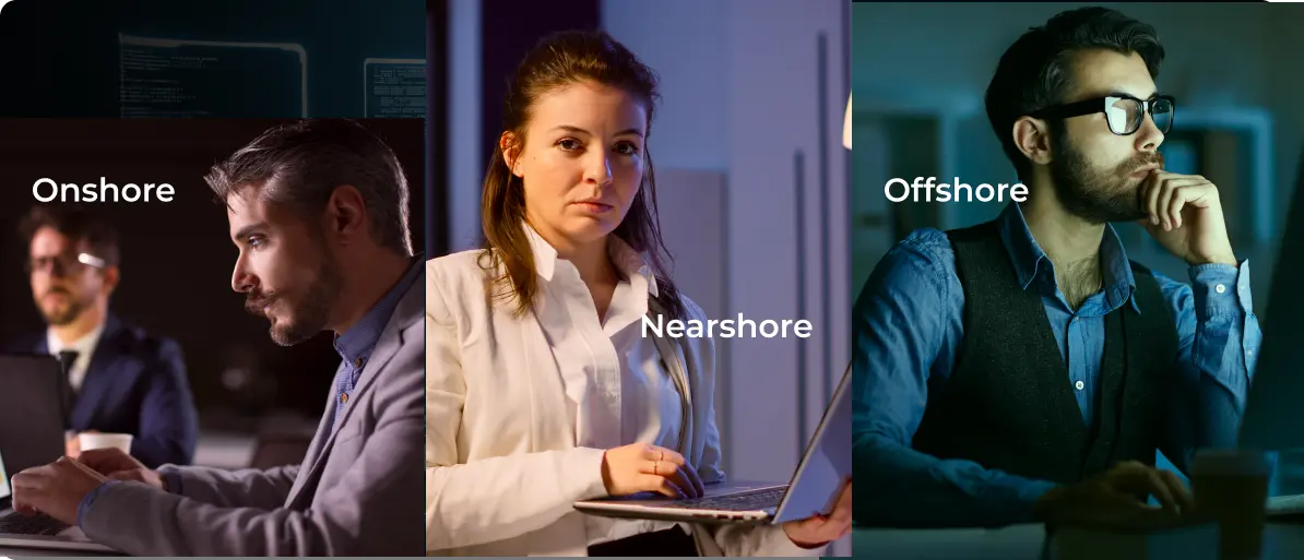 Before diving into benefits, trade-offs, and trends, it’s important to establish what each outsourcing model means in practice. While all three approaches involve leveraging external teams to build and maintain digital products, the geographical relationship between client and vendor creates very different dynamics.
