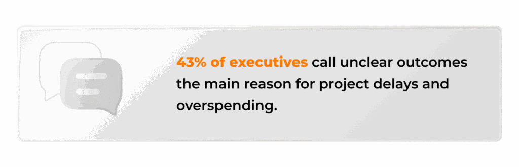 According to a recent survey done by Boston Consulting Group, unclear outcomes constitute the primary reason for project delays and overspending. Failure to define key success metrics and implement systems collecting and measuring them plays into this statistic.